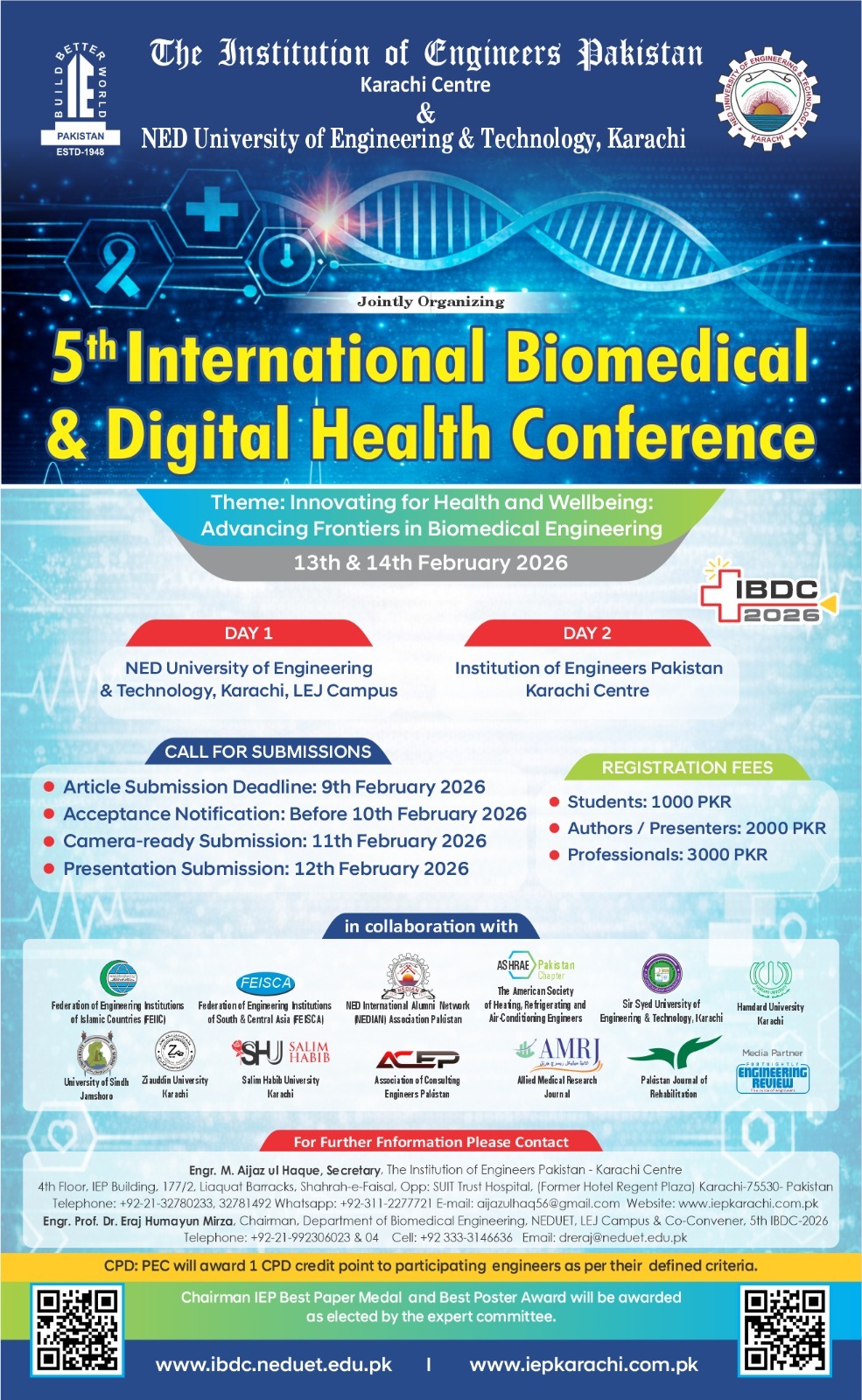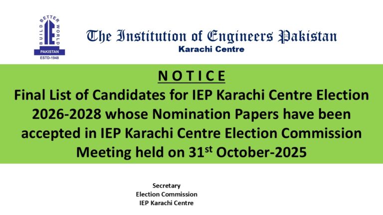 The 15th International Civil Engineering Conference (ICEC-2025), jointly organized by the NED University of Engineering & Technology and The Institution of Engineers Pakistan, will be held on November 7–8, 2025, in