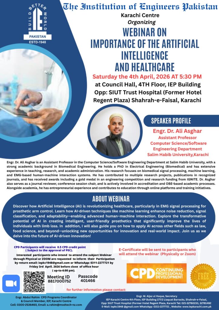 The Institution of Engineers Pakistan, the prime national body of engineers always endeavoring to keep pace with the ever expanding knowledge in the field of engineering.