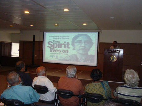 The Institution of Engineers Pakistan, Karachi Centre arranged a condolence meeting on Saturday July 6 2013 to pay tributes to Late Ms. Perween Rehman, Director Orangi Pilot Project and Training Institute (OPP-RTI) assassinated on March 13, 2013 in Karachi. The meeting started with the recitation from Holy Quran by Mr. Muhammad Shareef Khan. Engr. Sumera M. Bilgrami, Senior Architect, NESPAK conducted the programme.