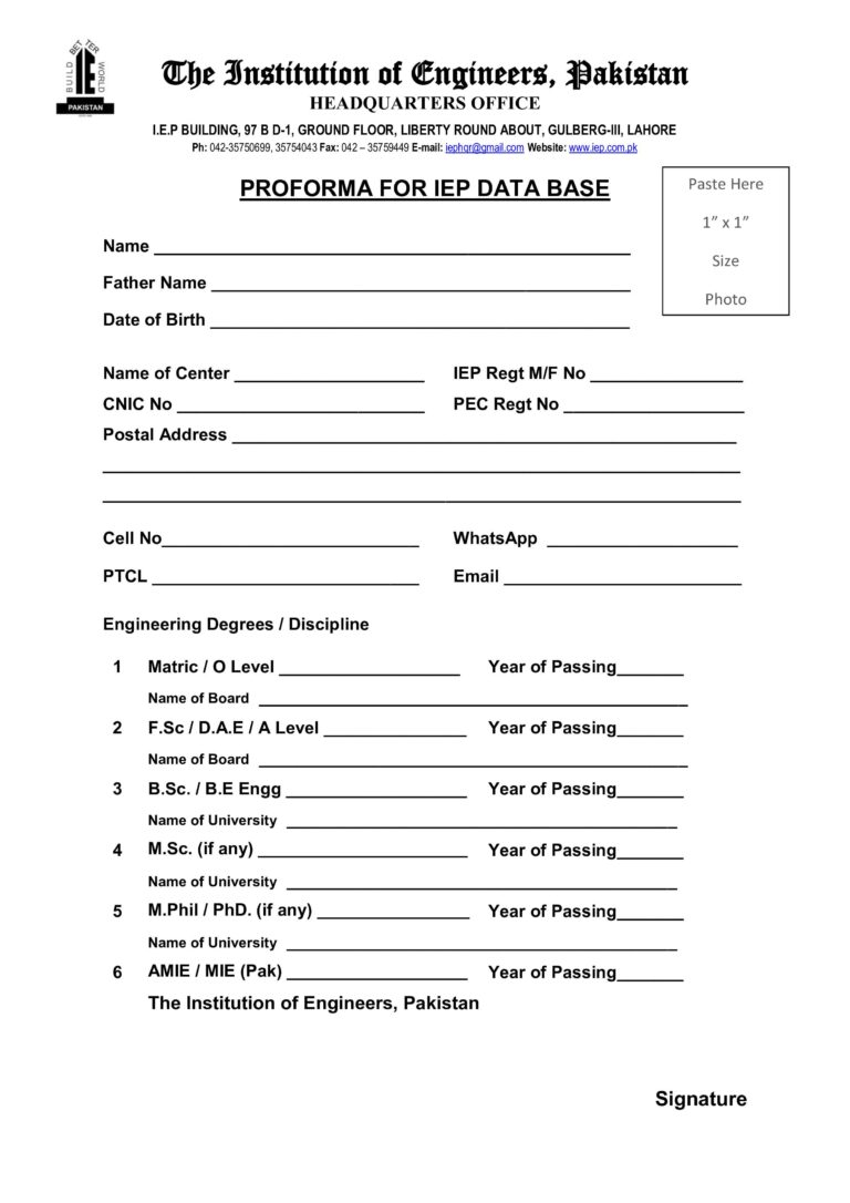 Please fill and send the attached data form along with a scan copy of your CNIC to us through email at iepkc1948@gmail.com, or at main@iepkarachi.org.pk or through WhatsApp on cell No: 0311-2277721 or through courier at our address given below: